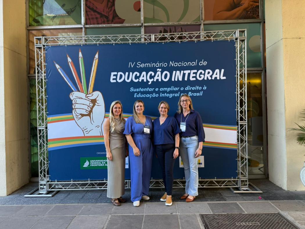 A Secretária Municipal de Educação de Jóia, Maria Terezinha Padilha Bernardi, juntamente com as coordenadoras pedagógicas Cátia Muller e Cristiele Claudy e a supervisora de Educação Sandra Vanderléia Abreu, participa nesta semana do IV Seminário Nacional de Educação Integral, realizado em Porto Alegre, no Salão de Atos da UFRGS, entre os dias 3 e 5 de novembro de 2025.