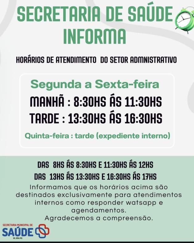 A Administração Municipal destaca que a definição desses horários busca garantir maior eficiência nos serviços administrativos e pede a compreensão da comunidade, reforçando o compromisso com a melhoria contínua do atendimento na área da saúde em Jóia.